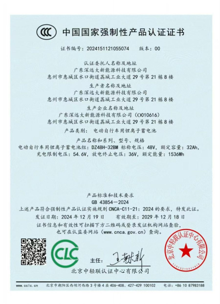 近期,鹏凯与广东深远大新能源科技有限公司合作成功,助力广东深远大新能源科技有限公司成功取得GB 43854-2024 标准3C国家强制性产品认证,广东深远大新能源订购了鹏凯恒温恒湿试验箱,电池组提把手强度试验机,动力电池挤压针刺试验机,动力电池跌落试验机等等GB 43854-2024 标准!非常感谢广东深远大新能源科技有限公司对鹏凯的信赖与支持!我们将竭诚为您服务!