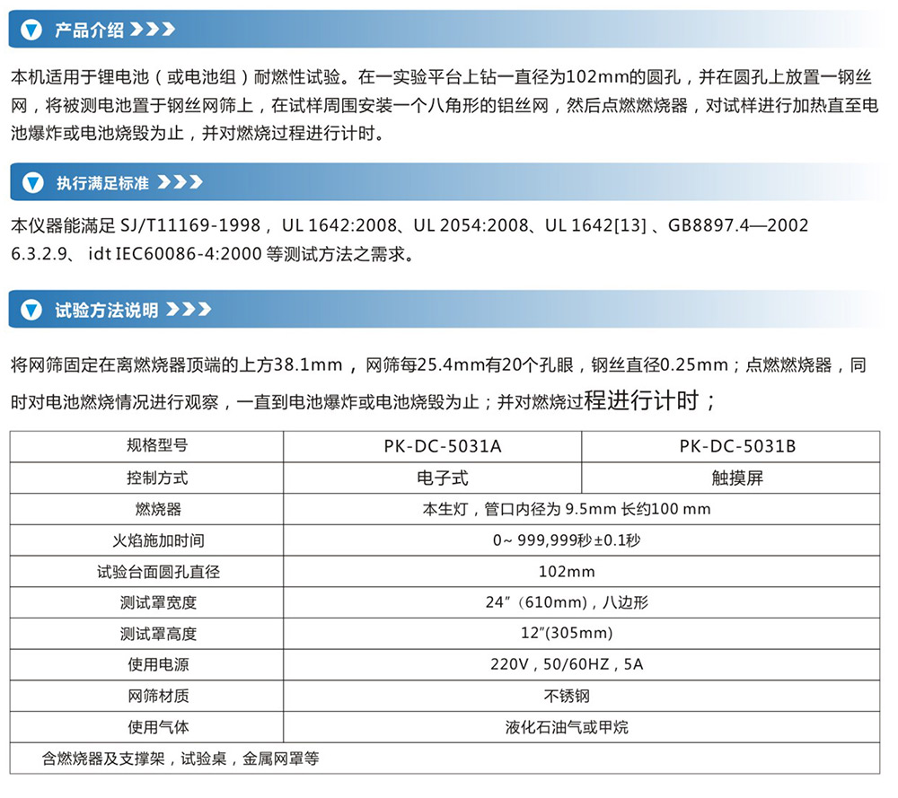 -> 电池燃烧试验机